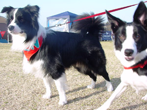 お兄ちゃんのケンケンくんは初めてのフリスビー岡山大会で同時にデビューして以来、仲良しのお友達になりました。ジャンプが得意のかわいい男の子です。妹のテンテンちゃんはボーヤファーム出身のスーパーアスリートです。将来、期待の女の子だよ〜♪